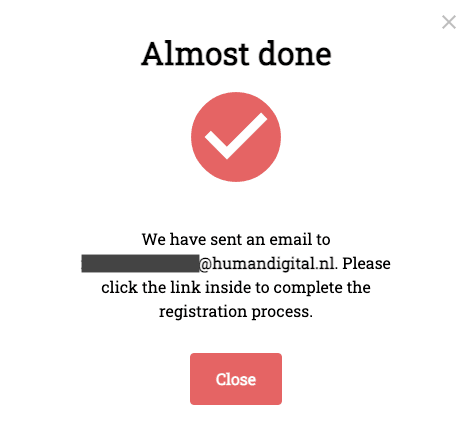 After submitted your details, you will receive a confirmation email with a link that is needed to finalize the registration. It will take roughly 1 minute for the email to arrive.